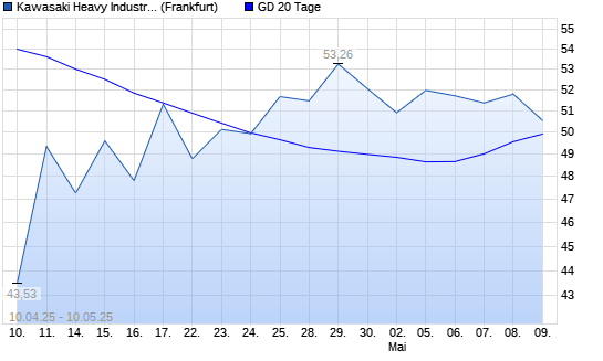 Mit dem Rücksetzer auf 50,56 EUR hat die Kawasaki Heavy-Aktie am 09.05.2025 die 20-Tage-Linie nach unten gekreuzt.