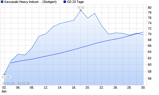 Mit dem Rücksetzer auf 69,94 EUR hat die Kawasaki Heavy-Aktie am 30.01.2026 die 20-Tage-Linie nach unten gekreuzt.
