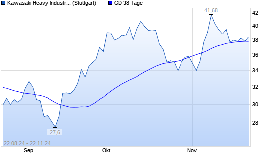 Mit dem Rücksetzer auf 38,01 EUR hat die Kawasaki Heavy-Aktie am 21.11.2024 die 38-Tage-Linie nach unten gekreuzt.