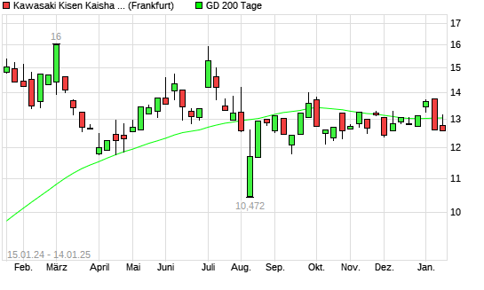 Mit dem Anstieg auf 13,15 EUR hat die Kawasaki Kisen Kaisha-Aktie am 13.01.2025 die 200-Tage-Linie nach oben gekreuzt.