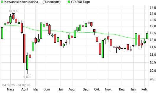 Mit dem Anstieg auf 12,36 EUR hat die Kawasaki Kisen Kaisha-Aktie am 03.02.2026 die 200-Tage-Linie nach oben gekreuzt.