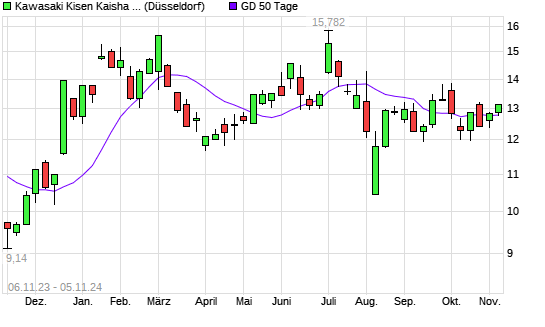Mit dem Anstieg auf 12,85 EUR hat die Kawasaki Kisen Kaisha-Aktie am 04.11.2024 die 50-Tage-Linie nach oben gekreuzt.