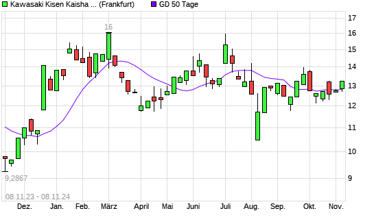 Mit dem Anstieg auf 12,98 EUR hat die Kawasaki Kisen Kaisha-Aktie am 07.11.2024 die 50-Tage-Linie nach oben gekreuzt.