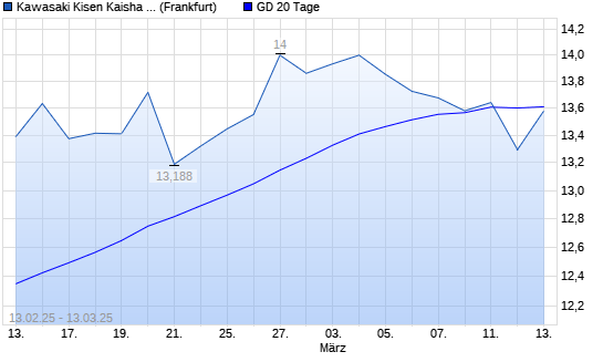 Mit dem Rücksetzer auf 13,29 EUR hat die Kawasaki Kisen Kaisha-Aktie am 12.03.2025 die 20-Tage-Linie nach unten gekreuzt.