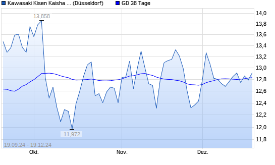 Mit dem Rücksetzer auf 12,85 EUR hat die Kawasaki Kisen Kaisha-Aktie am 18.12.2024 die 38-Tage-Linie nach unten gekreuzt.