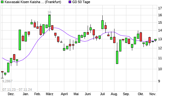 Mit dem Rücksetzer auf 12,71 EUR hat die Kawasaki Kisen Kaisha-Aktie am 06.11.2024 die 50-Tage-Linie nach unten gekreuzt.
