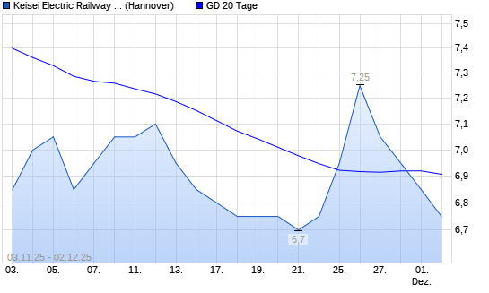 Mit dem Rücksetzer auf 6,90 EUR hat die Keisei Electric Railway-Aktie am 01.12.2025 die 20-Tage-Linie nach unten gekreuzt.