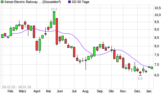 Mit dem Rücksetzer auf 6,85 EUR hat die Keisei Electric Railway-Aktie am 05.01.2026 die 50-Tage-Linie nach unten gekreuzt.