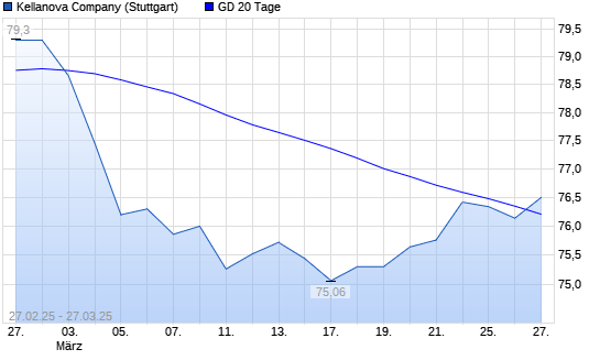 Mit dem Anstieg auf 76,10 EUR hat die Kellogg-Aktie am 26.03.2025 die 20-Tage-Linie nach oben gekreuzt.