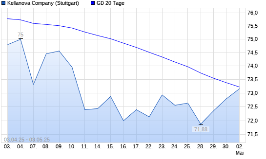 Mit dem Anstieg auf 72,80 EUR hat die Kellogg-Aktie am 02.05.2025 die 20-Tage-Linie nach oben gekreuzt.