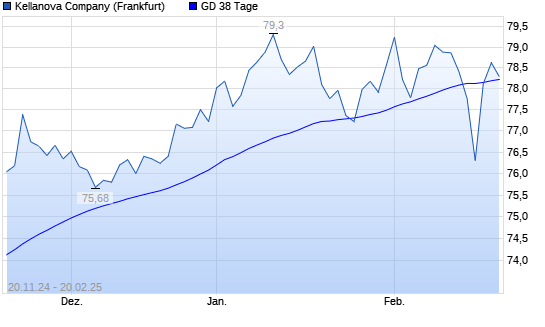 Mit dem Anstieg auf 78,62 EUR hat die Kellogg-Aktie am 19.02.2025 die 38-Tage-Linie nach oben gekreuzt.