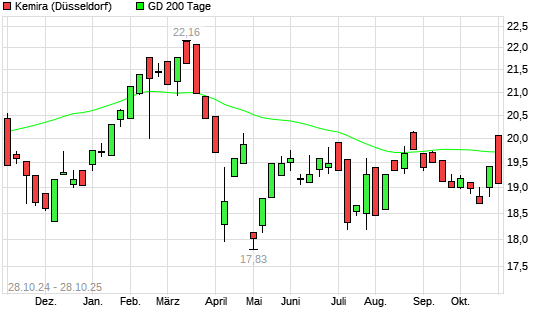 Mit dem Anstieg auf 20,02 EUR hat die Kemira-Aktie am 27.10.2025 die 200-Tage-Linie nach oben gekreuzt.