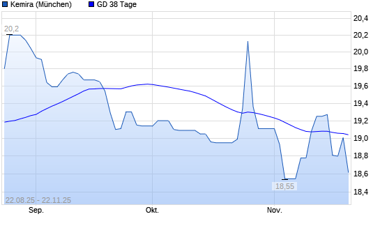 Mit dem Rücksetzer auf 18,44 EUR hat die Kemira-Aktie am 21.11.2025 die 38-Tage-Linie nach unten gekreuzt.