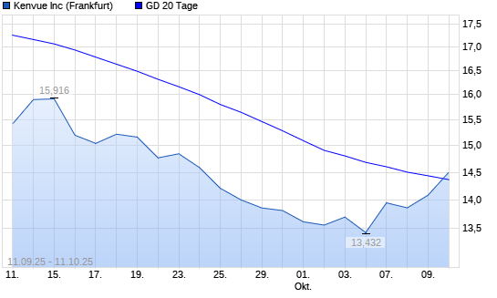 Mit dem Anstieg auf 14,50 EUR hat die Kenvue-Aktie am 10.10.2025 die 20-Tage-Linie nach oben gekreuzt.