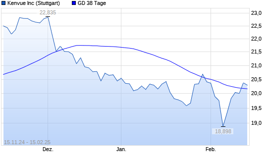 Mit dem Anstieg auf 20,07 EUR hat die Kenvue-Aktie am 14.02.2025 die 38-Tage-Linie nach oben gekreuzt.