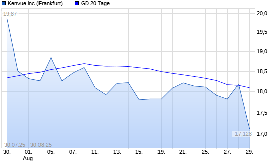 Mit dem Rücksetzer auf 17,13 EUR hat die Kenvue-Aktie am 29.08.2025 die 20-Tage-Linie nach unten gekreuzt.