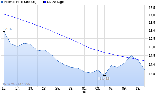 Mit dem Rücksetzer auf 14,26 EUR hat die Kenvue-Aktie am 13.10.2025 die 20-Tage-Linie nach unten gekreuzt.