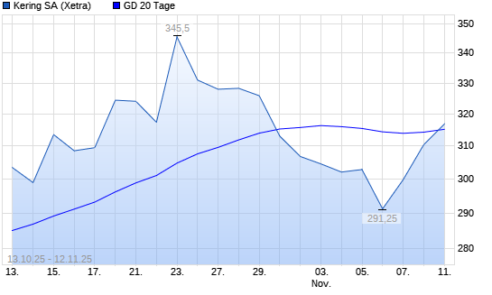 Mit dem Anstieg auf 317,10 EUR hat die Kering-Aktie am 11.11.2025 die 20-Tage-Linie nach oben gekreuzt.