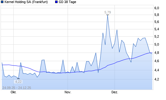 Mit dem Rücksetzer auf 4,77 EUR hat die Kernel Holding-Aktie am 23.12.2025 die 38-Tage-Linie nach unten gekreuzt.