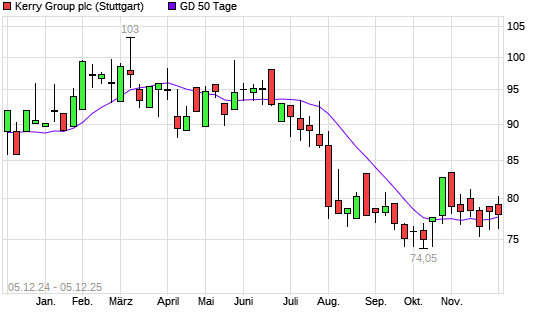 Mit dem Anstieg auf 78,65 EUR hat die Kerry Group-Aktie am 04.12.2025 die 50-Tage-Linie nach oben gekreuzt.