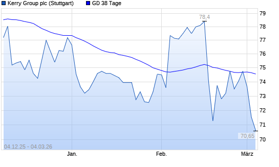 Mit dem Rücksetzer auf 73,30 EUR hat die Kerry Group-Aktie am 03.03.2026 die 38-Tage-Linie nach unten gekreuzt.