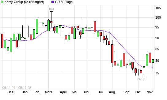 Mit dem Rücksetzer auf 77,95 EUR hat die Kerry Group-Aktie am 04.11.2025 die 50-Tage-Linie nach unten gekreuzt.