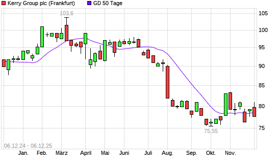 Mit dem Rücksetzer auf 77,65 EUR hat die Kerry Group-Aktie am 05.12.2025 die 50-Tage-Linie nach unten gekreuzt.