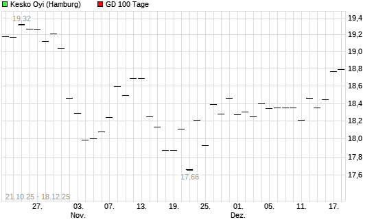 Mit dem Anstieg auf 18,66 EUR hat die Kesko B-Aktie am 17.12.2025 die 100-Tage-Linie nach oben gekreuzt.