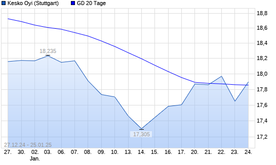 Mit dem Anstieg auf 17,95 EUR hat die Kesko B-Aktie am 24.01.2025 die 20-Tage-Linie nach oben gekreuzt.