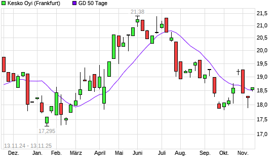 Mit dem Anstieg auf 18,62 EUR hat die Kesko B-Aktie am 12.11.2025 die 50-Tage-Linie nach oben gekreuzt.
