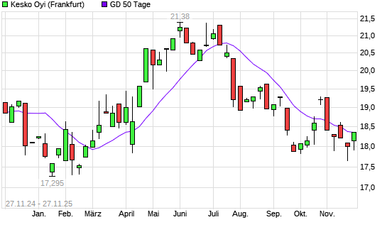 Mit dem Anstieg auf 18,37 EUR hat die Kesko B-Aktie am 26.11.2025 die 50-Tage-Linie nach oben gekreuzt.