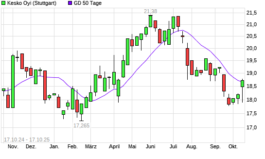 Mit dem Rücksetzer auf 18,56 EUR hat die Kesko B-Aktie am 16.10.2025 die 50-Tage-Linie nach unten gekreuzt.Die Kesko B-Aktie befindet sich seit dem 15.09.2025 im langfristigen Abwärtstrend ...weiterlesen