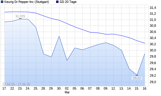 Mit dem Anstieg auf 30,18 EUR hat die Keurig Dr Pepper-Aktie am 16.05.2025 die 20-Tage-Linie nach oben gekreuzt.
