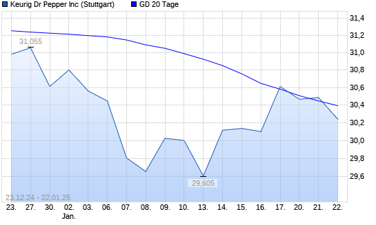 Mit dem Rücksetzer auf 30,24 EUR hat die Keurig Dr Pepper-Aktie am 21.01.2025 die 20-Tage-Linie nach unten gekreuzt.