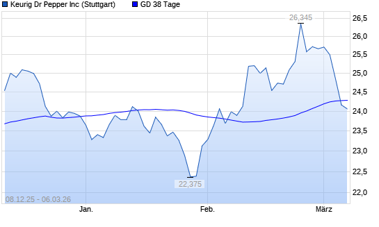 Mit dem Rücksetzer auf 24,08 EUR hat die Keurig Dr Pepper-Aktie am 05.03.2026 die 38-Tage-Linie nach unten gekreuzt.