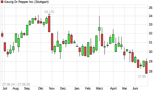 Mit dem Rücksetzer auf 28,10 EUR hat die Keurig Dr Pepper-Aktie (ISIN US49271V1008) am 26.06.2025 ein neues 12-Monats-Tief erreicht und damit den Kurs vom 18.06.2025 eingestellt.Die Keurig ...weiterlesen