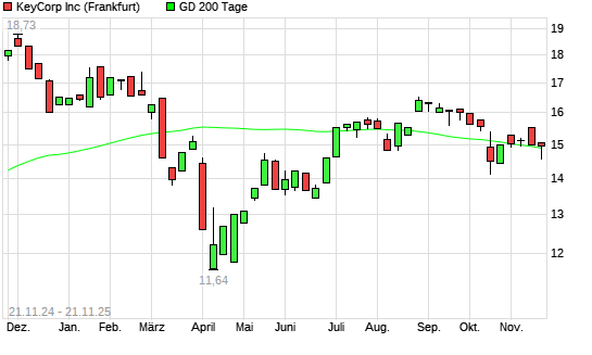 Mit dem Anstieg auf 15,00 EUR hat die KeyCorp-Aktie am 20.11.2025 die 200-Tage-Linie nach oben gekreuzt.