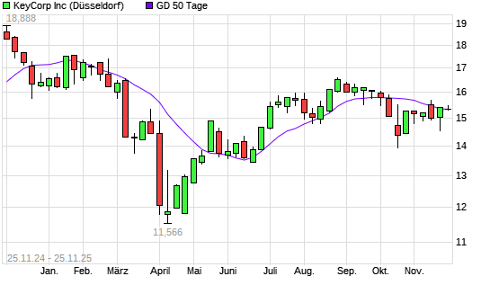 Mit dem Anstieg auf 15,35 EUR hat die KeyCorp-Aktie am 24.11.2025 die 50-Tage-Linie nach oben gekreuzt.