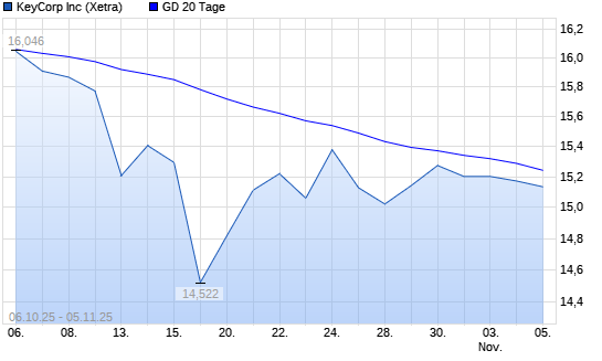 Mit dem Rücksetzer auf 14,97 EUR hat die KeyCorp-Aktie am 04.11.2025 die 20-Tage-Linie nach unten gekreuzt.
