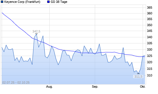 Mit dem Anstieg auf 324,80 EUR hat die Keyence-Aktie am 01.10.2025 die 38-Tage-Linie nach oben gekreuzt.