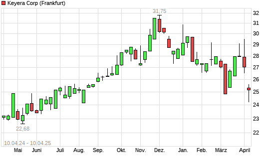 Mit dem Rücksetzer auf 24,26 EUR hat die Keyera-Aktie (ISIN CA4932711001) am 09.04.2025 ein neues 6-Monats-Tief erreicht und damit den Kurs vom 07.03.2025 eingestellt.