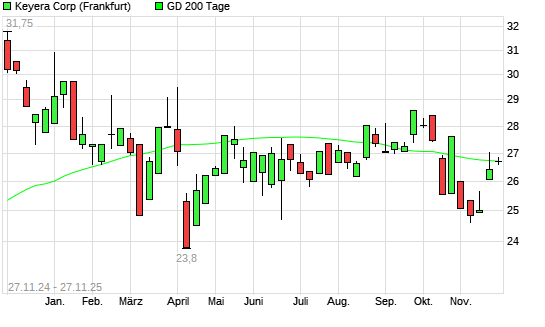 Mit dem Anstieg auf 26,84 EUR hat die Keyera-Aktie am 26.11.2025 die 200-Tage-Linie nach oben gekreuzt.