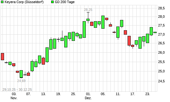 Mit dem Anstieg auf 26,87 EUR hat die Keyera-Aktie am 29.12.2025 die 200-Tage-Linie nach oben gekreuzt.