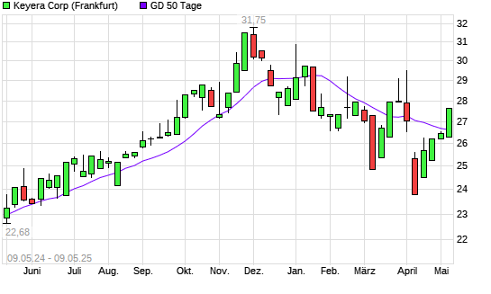 Mit dem Anstieg auf 27,16 EUR hat die Keyera-Aktie am 08.05.2025 die 50-Tage-Linie nach oben gekreuzt.