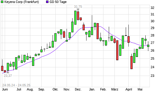 Mit dem Anstieg auf 26,74 EUR hat die Keyera-Aktie am 23.05.2025 die 50-Tage-Linie nach oben gekreuzt.
