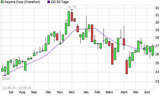Mit dem Anstieg auf 26,54 EUR hat die Keyera-Aktie am 12.06.2025 die 50-Tage-Linie nach oben gekreuzt.