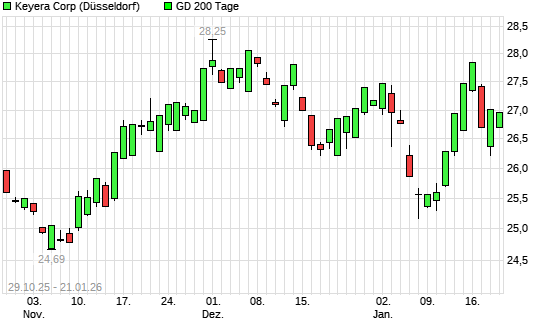 Mit dem Rücksetzer auf 26,32 EUR hat die Keyera-Aktie am 20.01.2026 die 200-Tage-Linie nach unten gekreuzt.