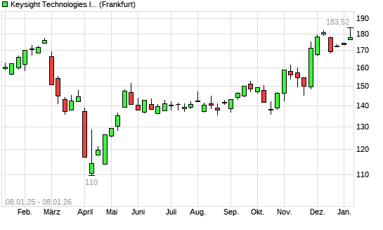 Mit dem Anstieg auf 181,94 EUR hat die Keysight Technologies-Aktie (ISIN US49338L1035) am 07.01.2026 ein neues 3-Jahres-Hoch erreicht und damit den Kurs vom 09.12.2025 eingestellt.