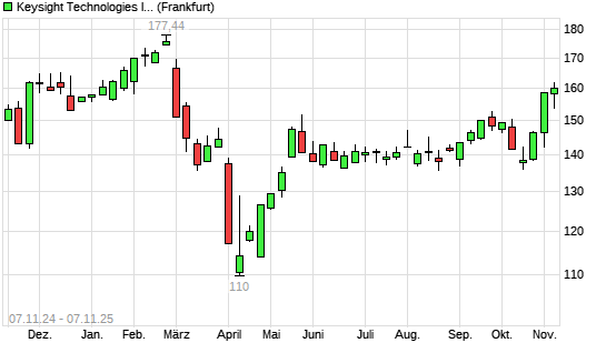 Mit dem Anstieg auf 160,74 EUR hat die Keysight Technologies-Aktie (ISIN US49338L1035) am 06.11.2025 ein neues 6-Monats-Hoch erreicht und damit den Kurs vom 04.11.2025 eingestellt.