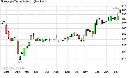 Mit dem Anstieg auf 199,58 EUR hat die Keysight Technologies-Aktie (ISIN US49338L1035) am 11.02.2026 ein neues All-Time-High erreicht und damit den Kurs vom 09.02.2026 eingestellt.